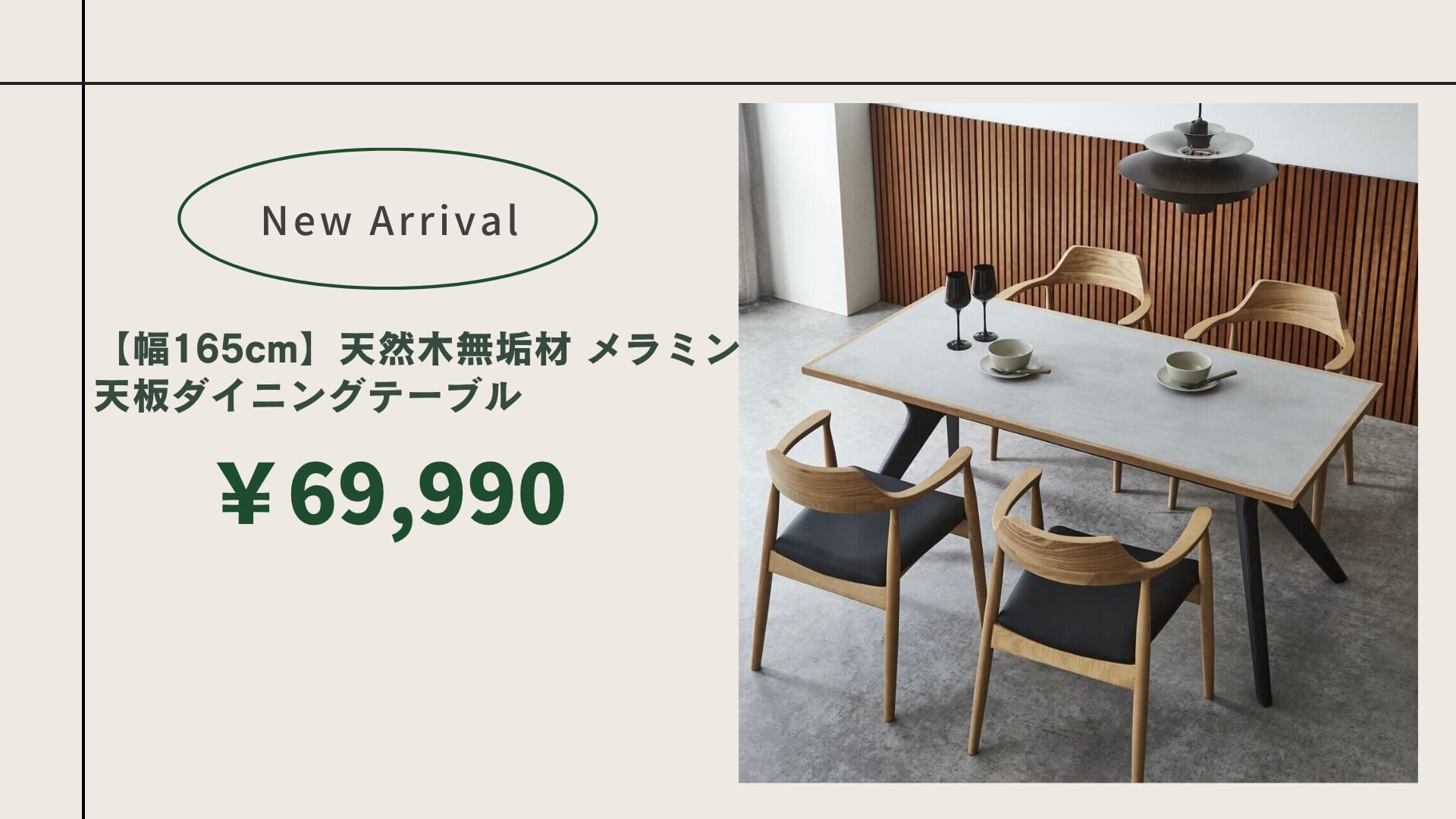 【幅165cm】天然木無垢材 メラミン天板ダイニングテーブル