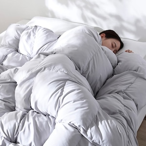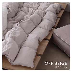 羽毛ではないため自宅の洗濯機で丸洗いが可能で、ネットに入れて弱洗いコースで簡単にお手入れできます。(※ドラム式不可。洗濯後は中わたを慣らしてから干してください。)生地にはなめらかなピーチスキン加工を施し、肌に吸い付くような心地よい触り心地を実現。低ホルムアルデヒドの安全基準もクリアしているため、お子さま用としても安心です。