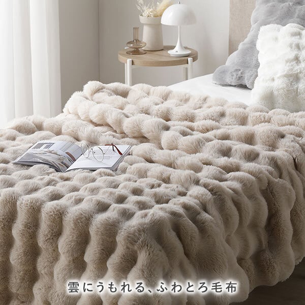 【Sサイズ】ラビットファー調ポコポコ洗えるふわとろ毛布
