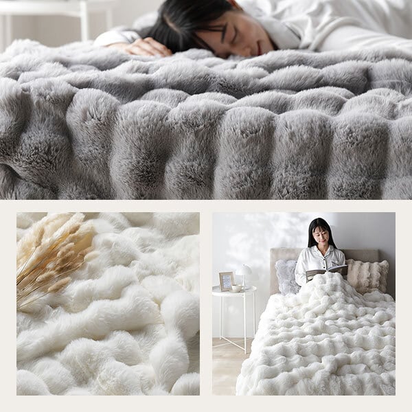 ラビットファー調ポコポコ洗えるふわとろブレンケット