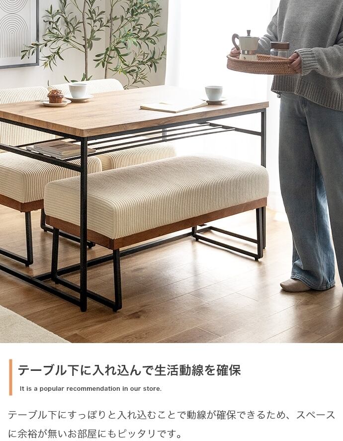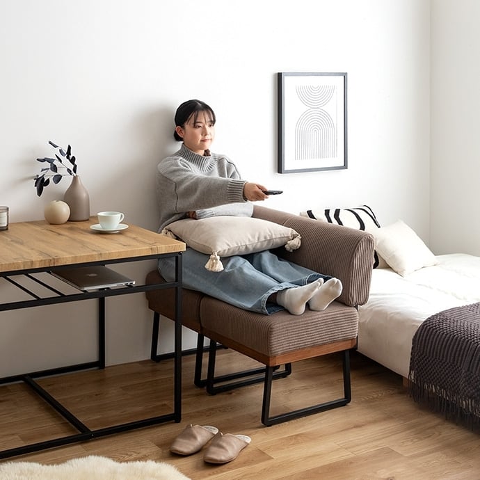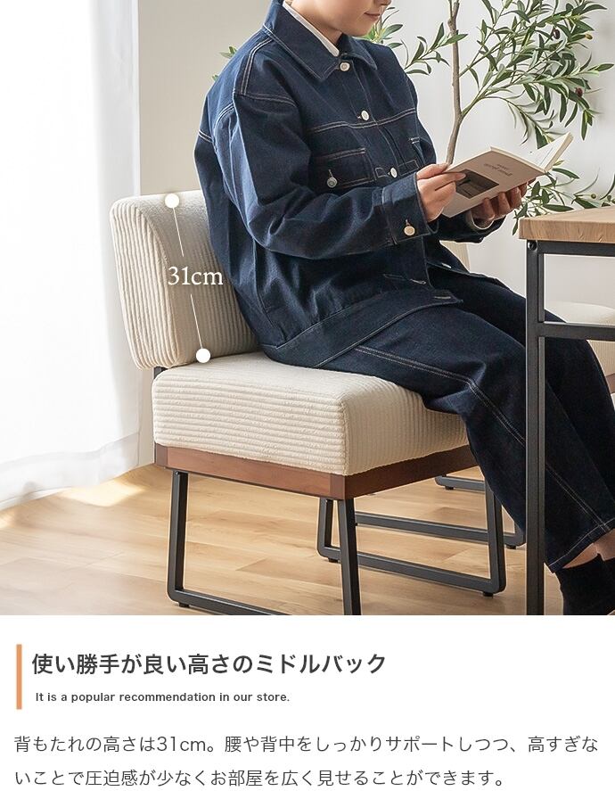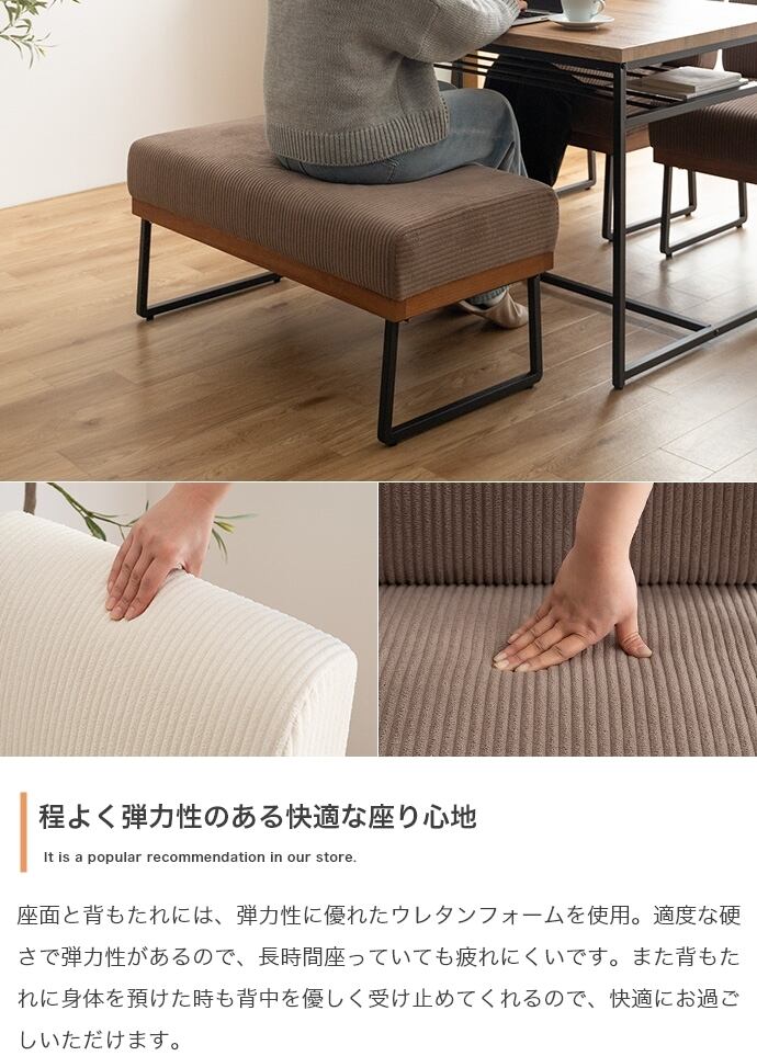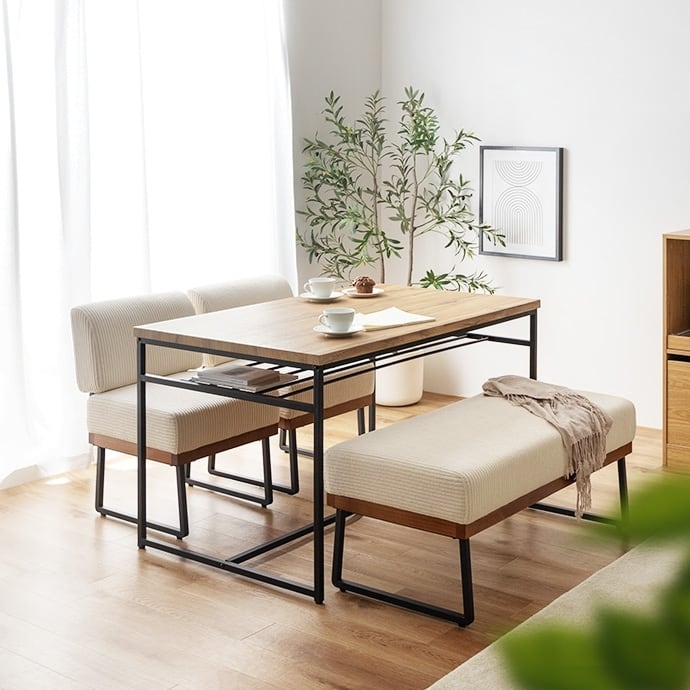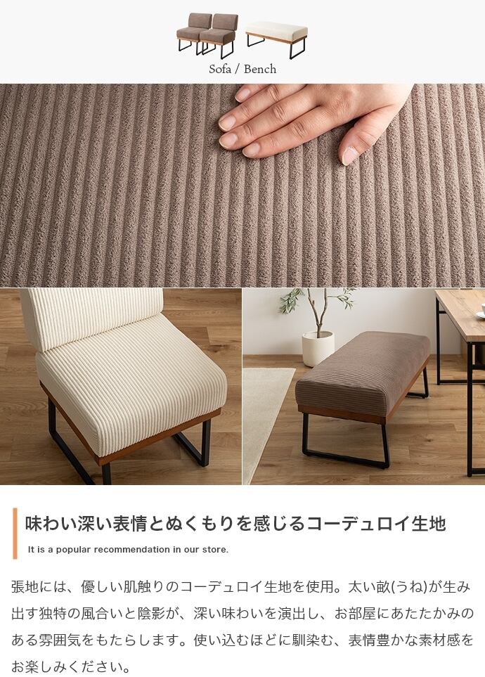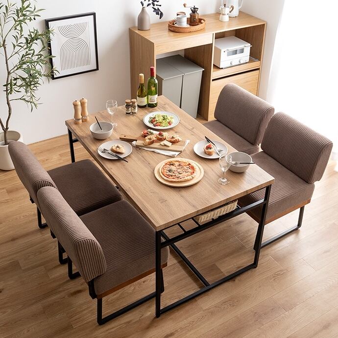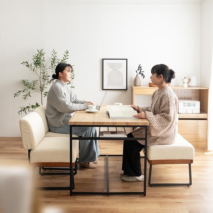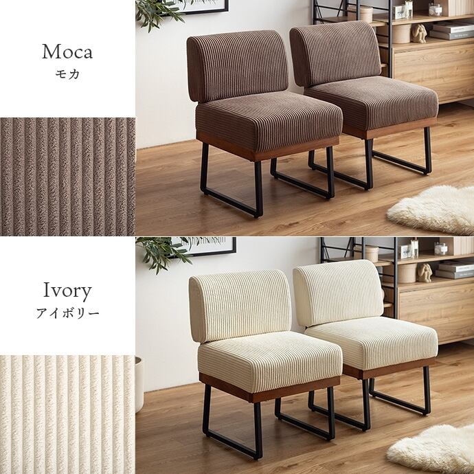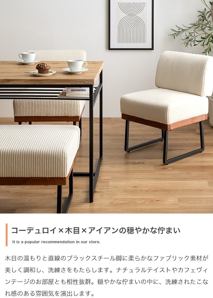食卓とくつろぎ、どちらも叶える1人掛けダイニングソファ2脚セット。コーデュロイ×木目×アイアンの異素材MIXがこなれ感のある洗練された雰囲気を演出。程よい弾力の座面は長時間座っていても疲れにくく、快適にお過ごしいただけます。