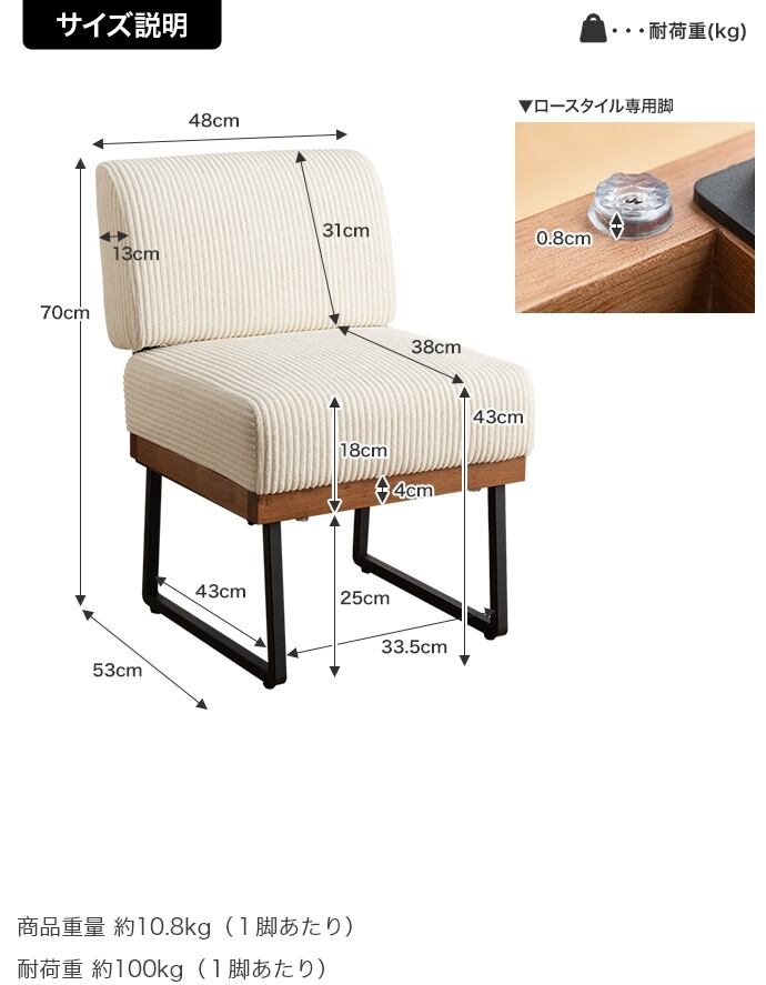 幅48cm×奥行53cm×高さ70cm(座面高:43cm)
