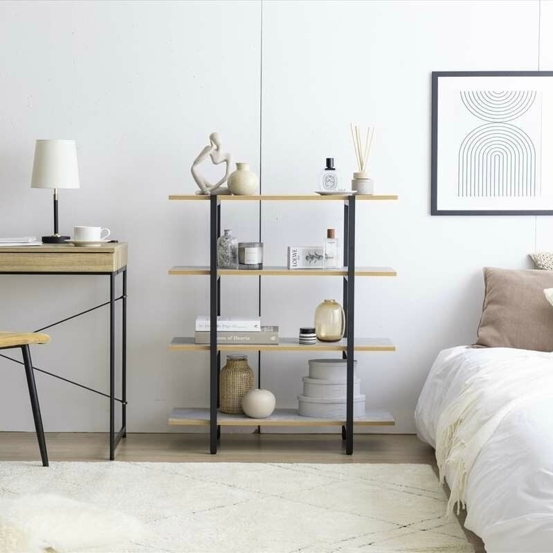 ヴィンテージ感のある木目調とストーン調の組み合わせが、お部屋をおしゃれに演出する『Pesci(ペッシ)』シリーズのオープンラック4段。仕切りがないオープンタイプのため、配置や方向を気にせずに収納ができ、お部屋の中に別空間やプライベート空間を作る間仕切りとしてもご使用いただけます。また、コンパクトで置きやすいサイズ設計なので、一人暮らしやワンルームにお住まいの方にもピッタリです。