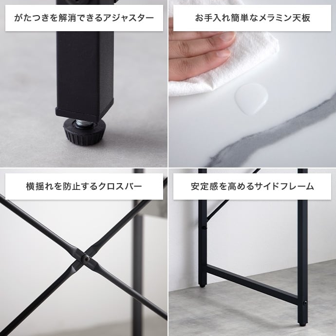 パーティクルボード(メラミン貼り)、スチール(粉体塗装)